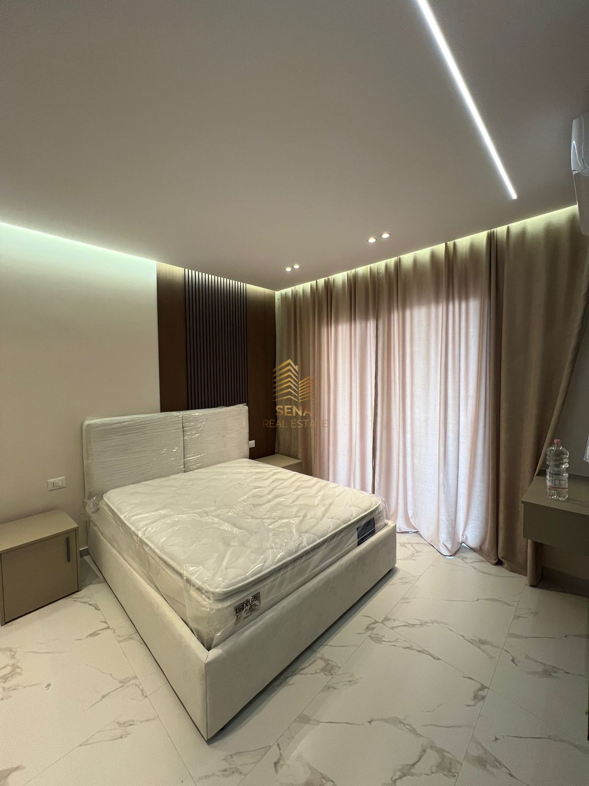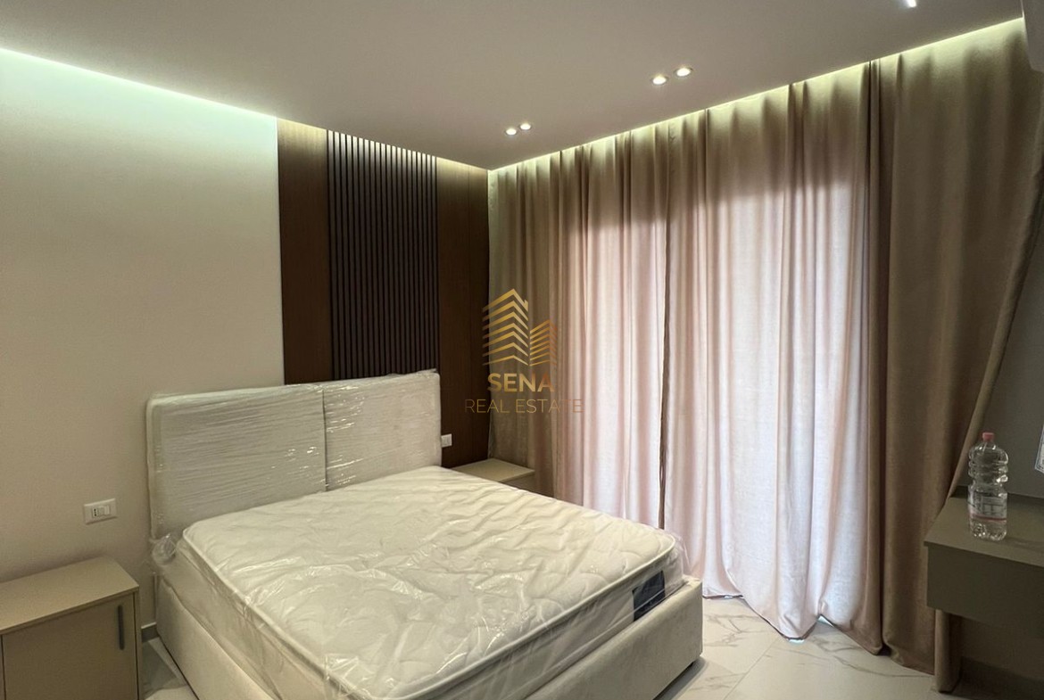 Dhoma e gjumit ofron komoditet maksimal me krevat dopio cilësor, komodina moderne dhe dalje në ballkon, duke siguruar ndriçim natyral dhe ajrim shumë të mirë. Punime dhe materiale cilësore, dysheme me efekt mermeri dhe çdo element i përzgjedhur me kujdes.
