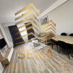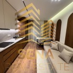 Arredimi i apartamentit është bashkëkohor, harmonik dhe shumë funksional, me mobilje druri cilësore dhe pajisje të integruara, ndriçim LED të fshehur dhe detaje dekorative bashkëkohore.