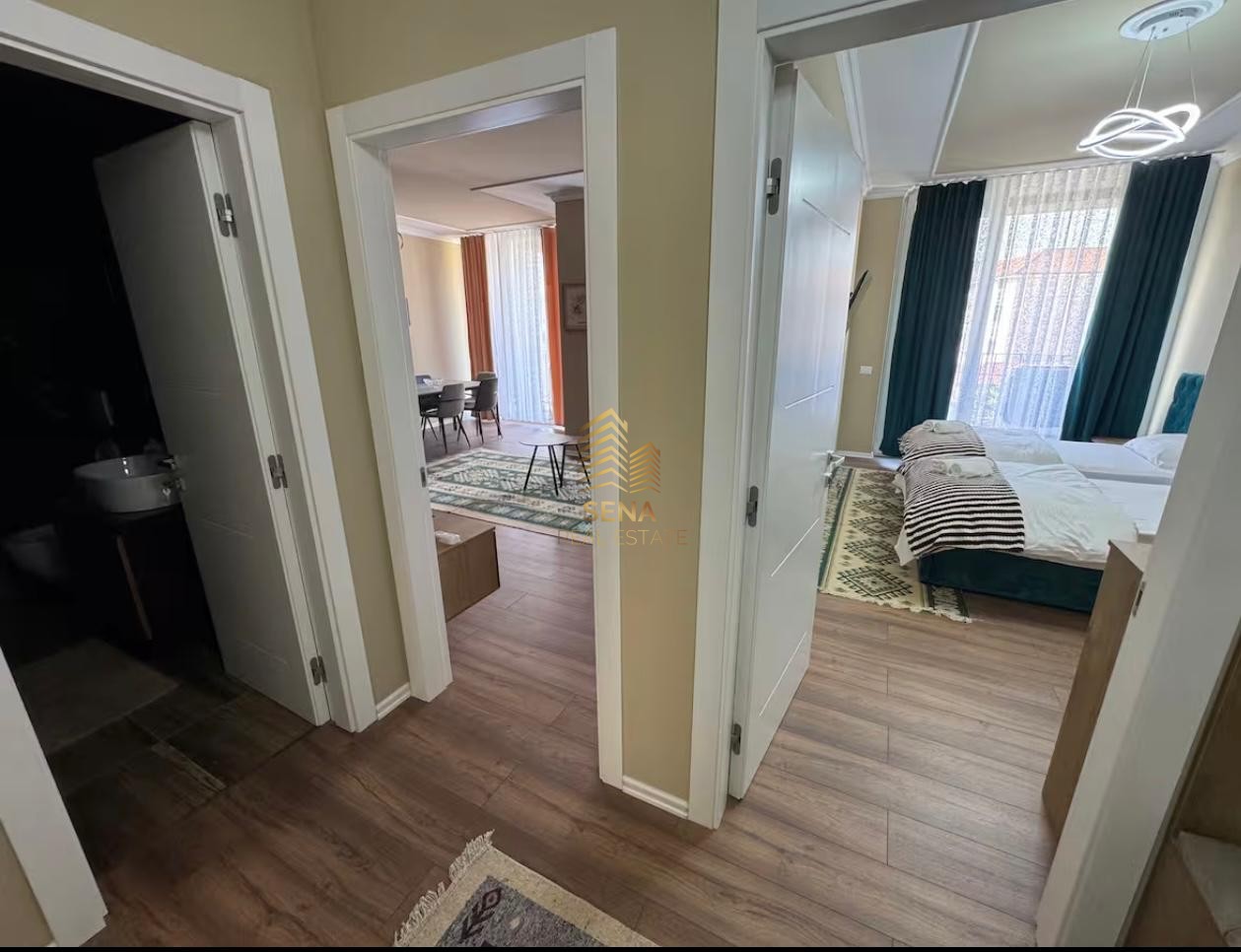 Apartamenti eshte totalisht i investuar ne detaje me punime te cilesise premium. I shtruar me parket laminat, elektroshtepiakete A+++, mobilje bashkekohore dhe moderne.