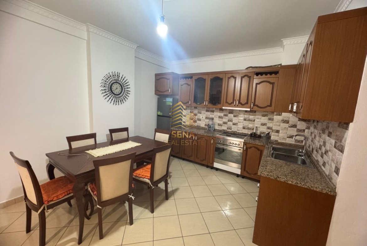 Organizohet ne sallon ndenje, ambient gatimi, 2 dhoma gjumi, 2 tualete dhe  ballkoni. Apartamenti jepet i mobiluar dhe i pajisur me  kondicioner.