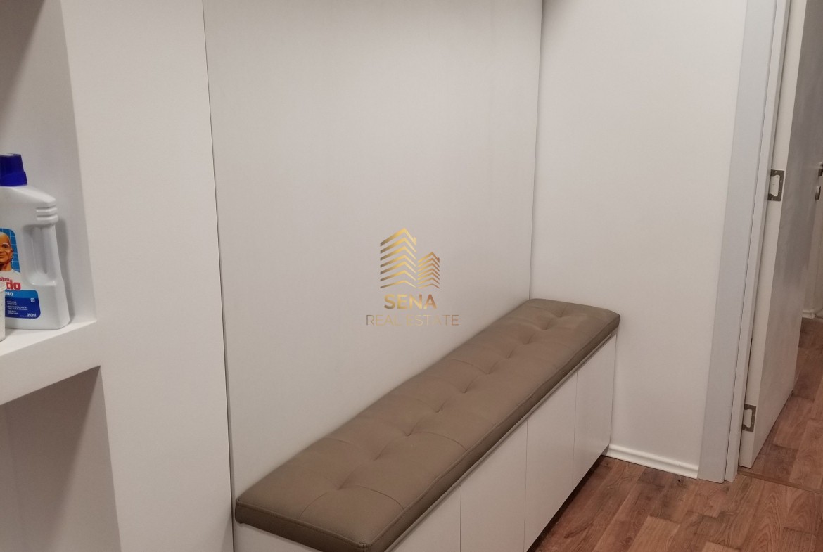 Apartamenti organizohet në një sallon të bollshëm dhe plot dritë natyrale, i integruar me ambientin e gatimit modern dhe plotësisht të pajisur me të gjitha elektroshtepiaket e nevojshme. Zona e fjetjes përbëhet nga një dhomë matrimoniale komode dhe një dhomë për fëmijë. Prona disponon gjithashtu 2 tualete funksionale dhe 2 depo, duke ofruar prakticitet maksimal në përditshmëri.