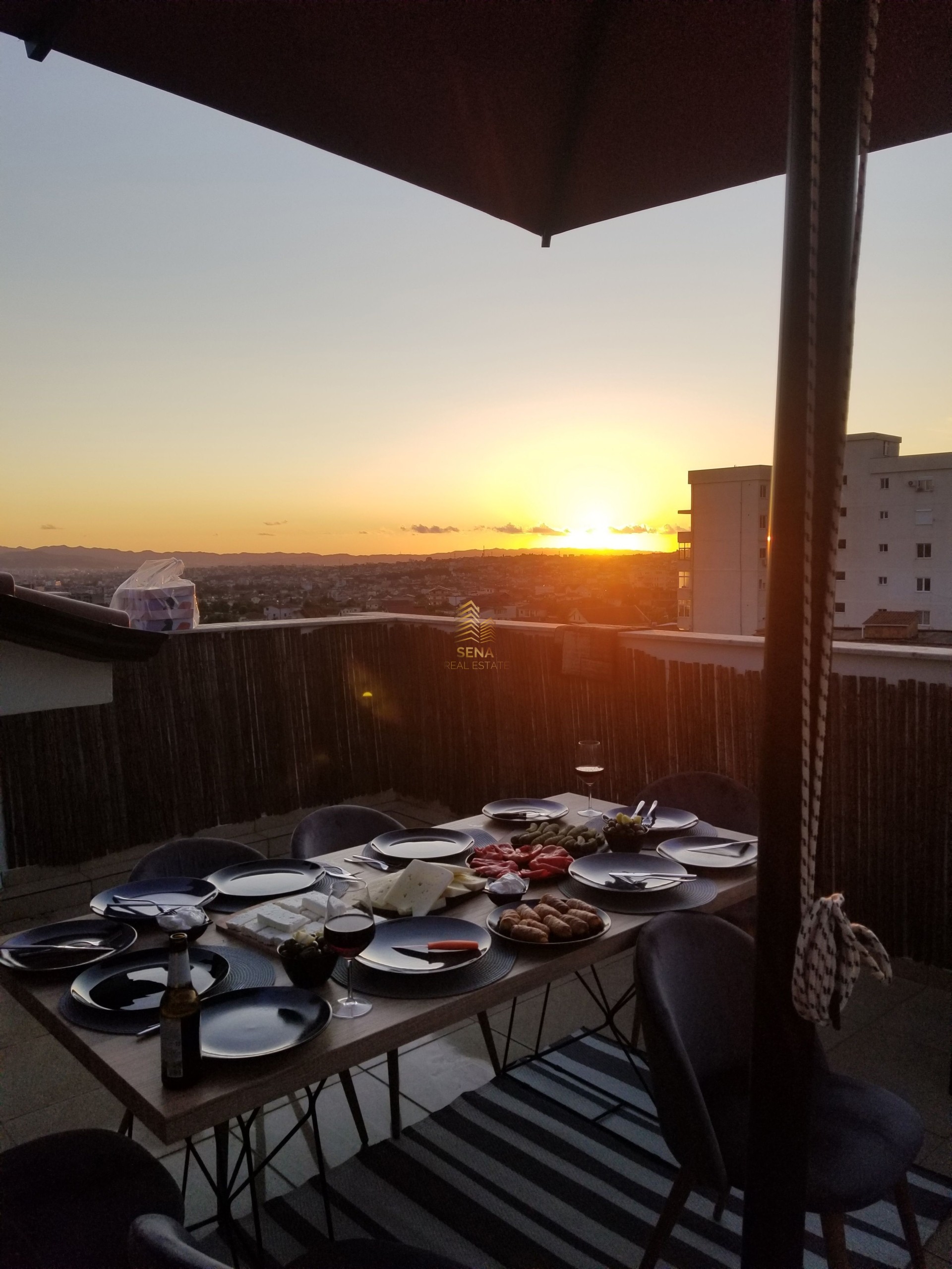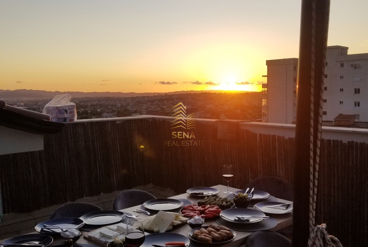 Një nga veçoritë kryesore është veranda e madhe prej 50 m², ideale për relaks apo organizime në ambiente të hapura, si dhe ballkoni që shton më shumë hapësirë dhe ajrim natyral.