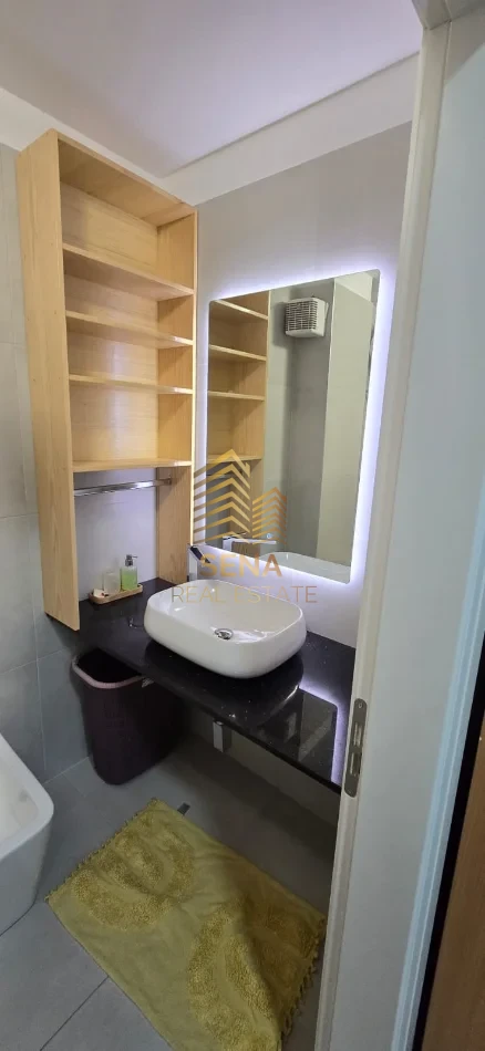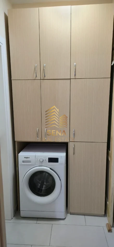 Organizohet ne sallon ndenje, ambient gatimi, 2 dhoma gjumi, 1 tualet dhe ballkoni. Apartamenti ofrohet i mobiluar totalisht dhe i pajisur me te gjitha elektroshtepiaket e nevojshme per nje jetese sa me komode. Orientimi i hyrjes eshte Jug-Perendim, pra ofron ndricim natyral gjate gjithe dites.