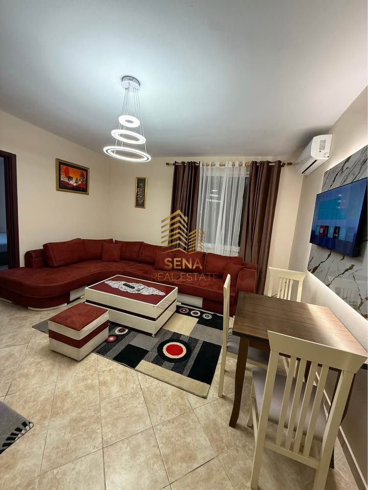 Organizohet ne sallon ndenje, ambient gatimi, 2 dhoma gjumi, tualeti dhe ballkoni. Apartamenti eshte i mobiluar teresisht, me cdo elektroshtepiake te nevojshme dhe me kondicioner.