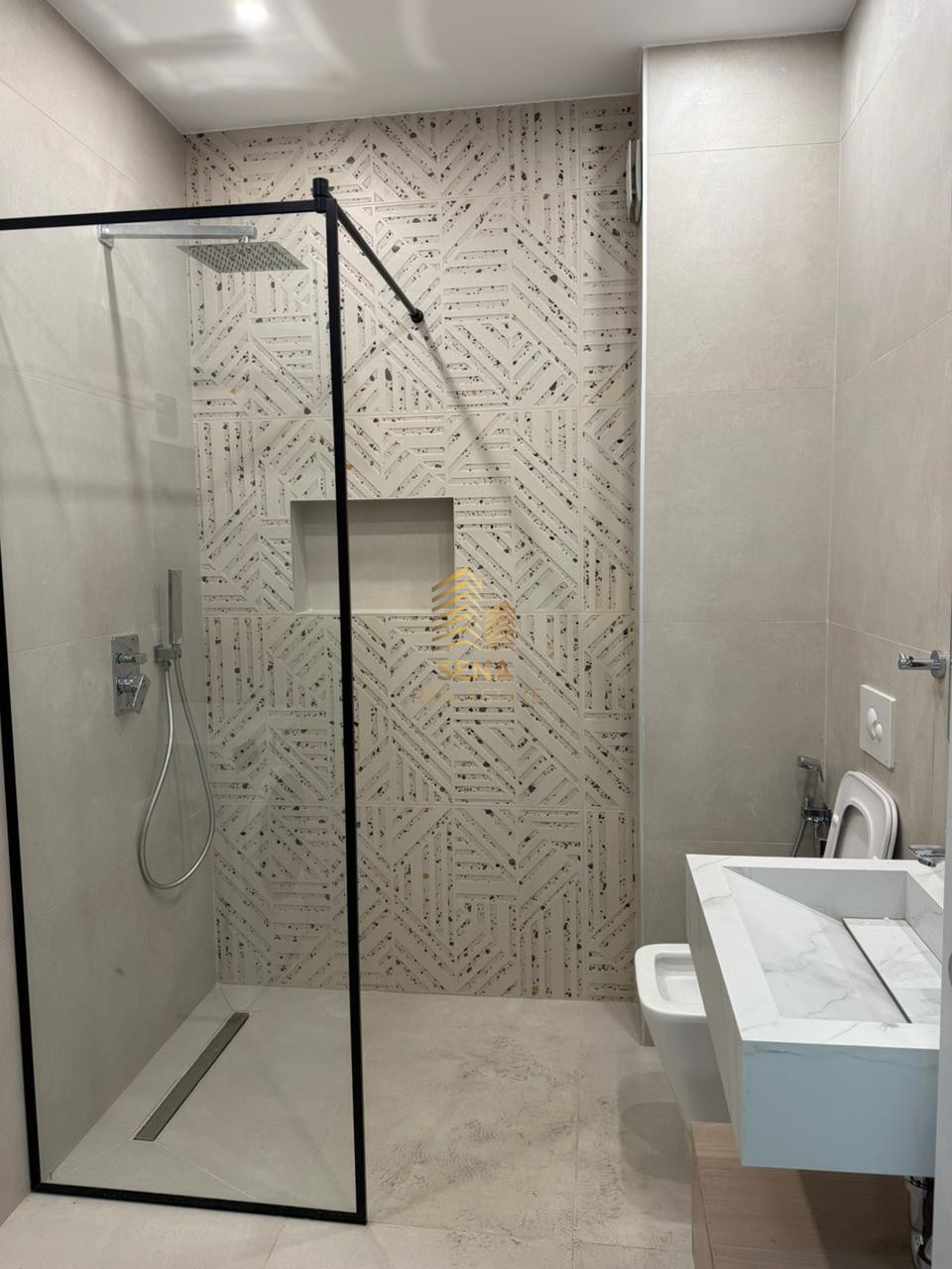 Apartamenti eshte totalisht i investuar ne detaje me punime te cilesis premium. I shtruar me parket laminat, elektroshtepiakete A+++ (ne qese te gjitha), dush dhe kondicionera smart te cilet komandohen nga telefoni, Smart TV, tavane te varur me ndricim me spote/led, mobilje bashkekohore dhe moderne etj.