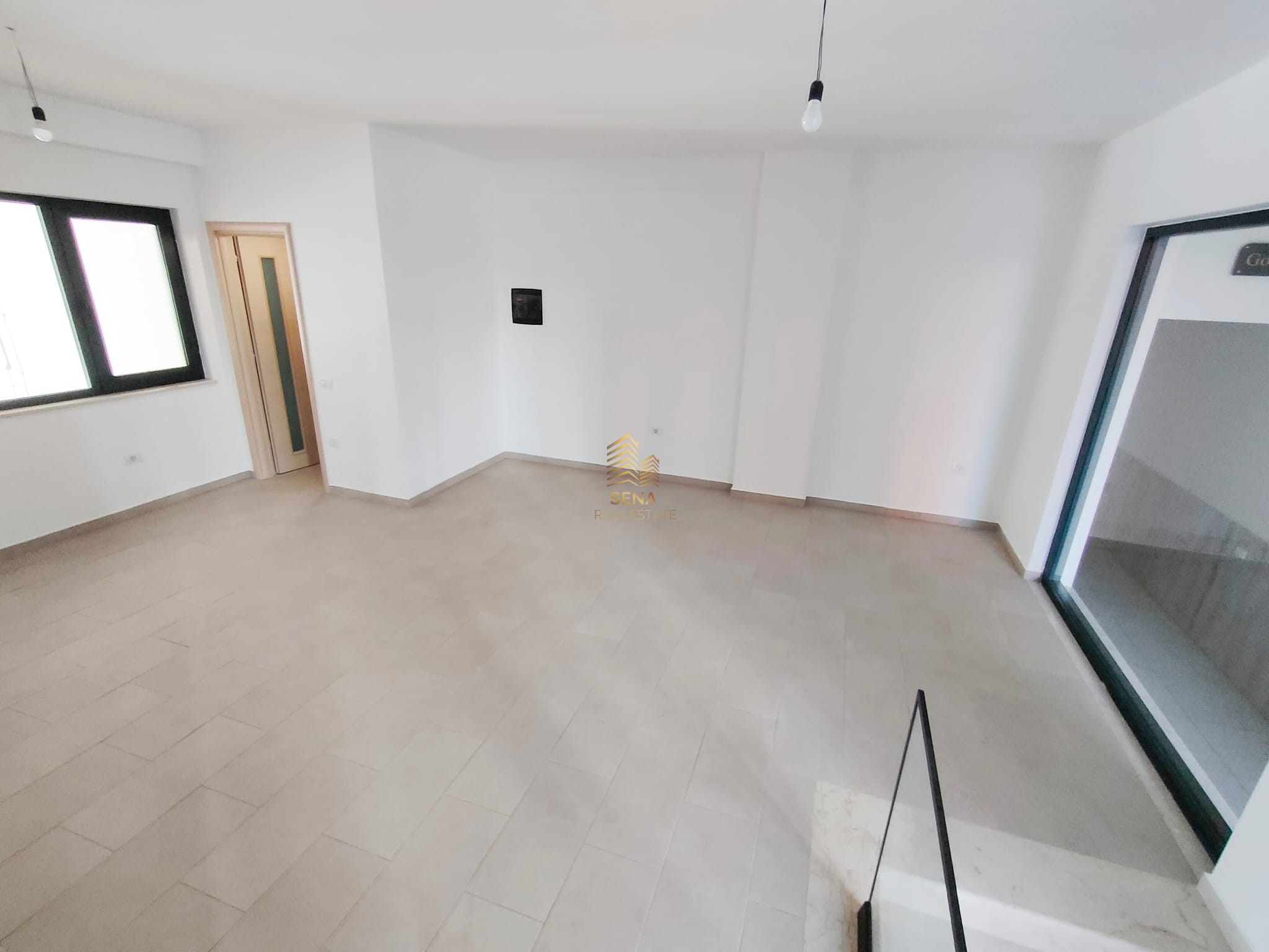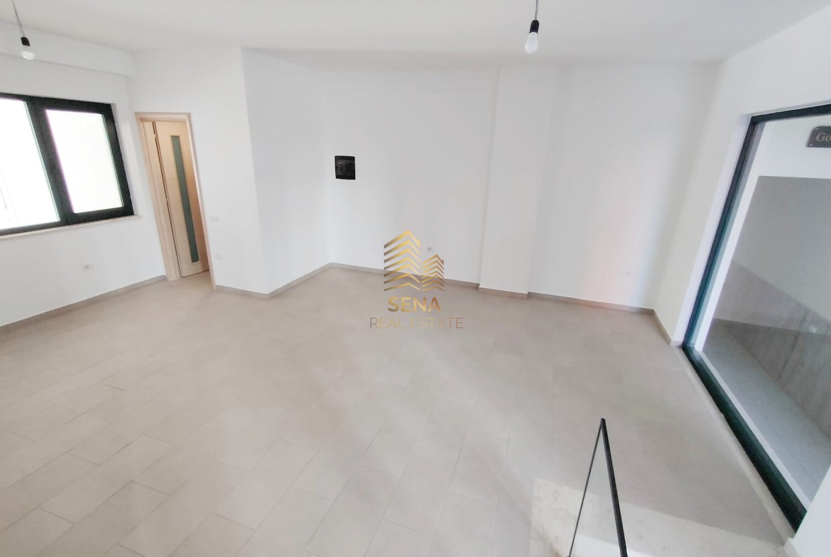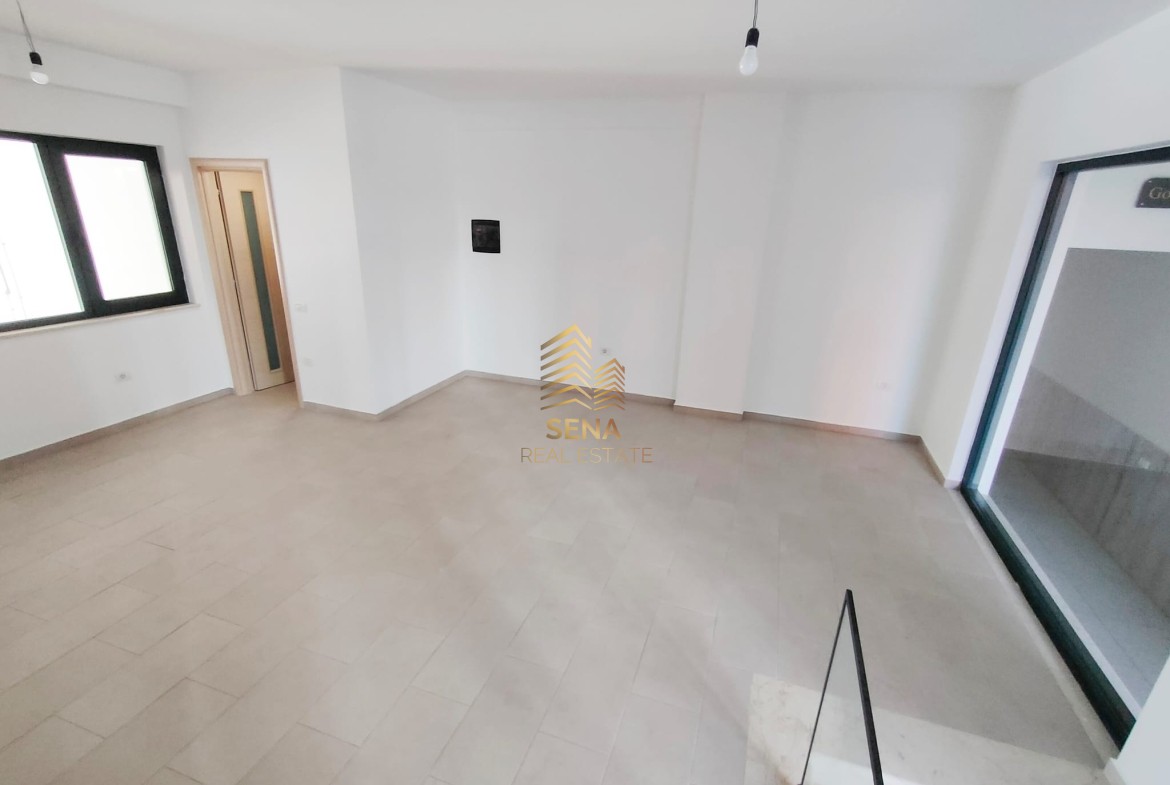 Ambienti perbehet nga disa shkalle ne hyrje, qe te lidhin me hapesiren open space me 3 vetrata te medha xhami. Disponon nje tualet te kompletuar me hidrosanitaret dhe lavamanin.