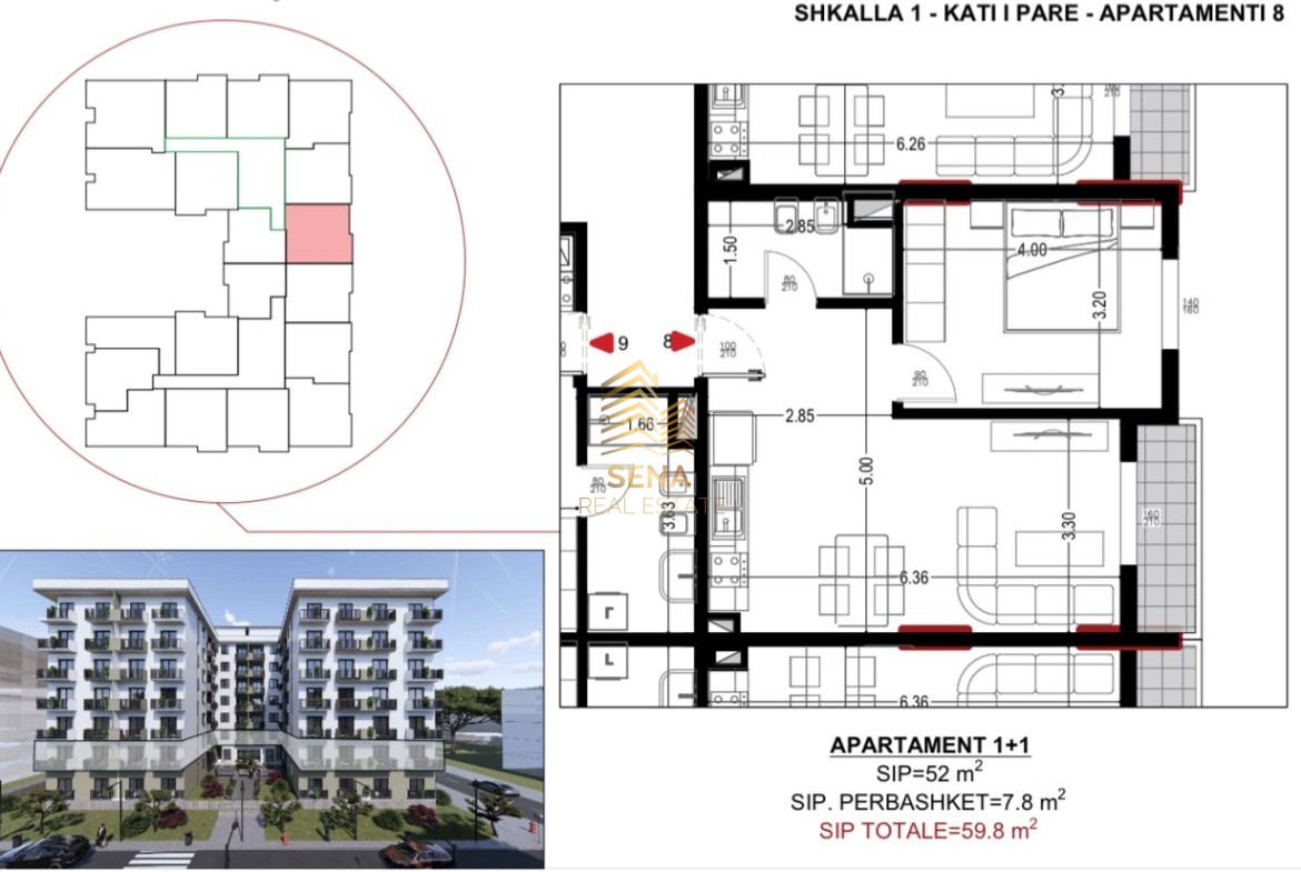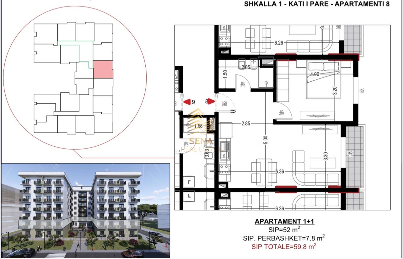– Siperfaqja Bruto 59.8 m²