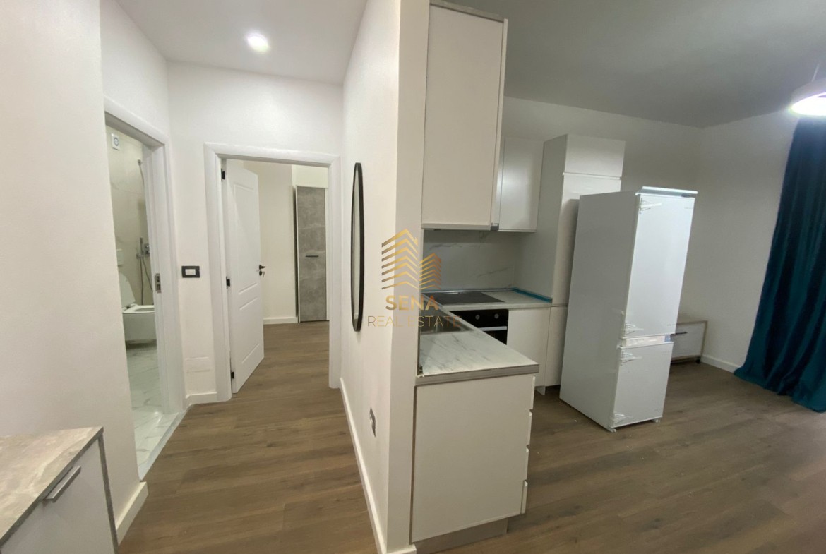 Apartamenti eshte i organizuar ne sallon ndenje, ambient gatimi, 1 dhome gjumi, tualeti dhe veranda.Hyrja eshte e  sapo investuar e shtruar me parket, instalime elektrike edhe hidraulike te reja.