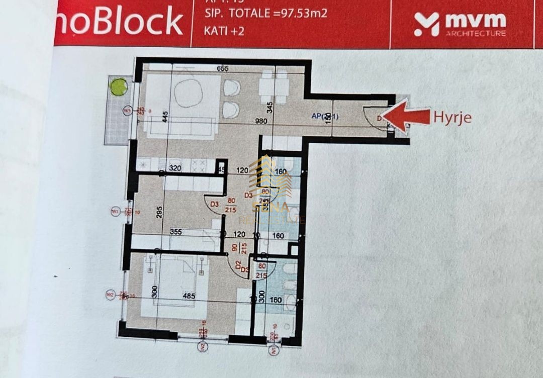 Shitet apartament i tipologjise 2+1+2 ne Rezidencen Kinoblock, nje nga komplekset me te reja dhe cilesore ne zonen e Porcelanit. Apartamenti ka nje siperfaqe totale prej 97.53 m² dhe karakterizohet nga nje organizim funksional, ndricim natyral dhe hapesira te mire shfrytezuara, duke e bere ideal si per banim familjar ashtu edhe per investim.