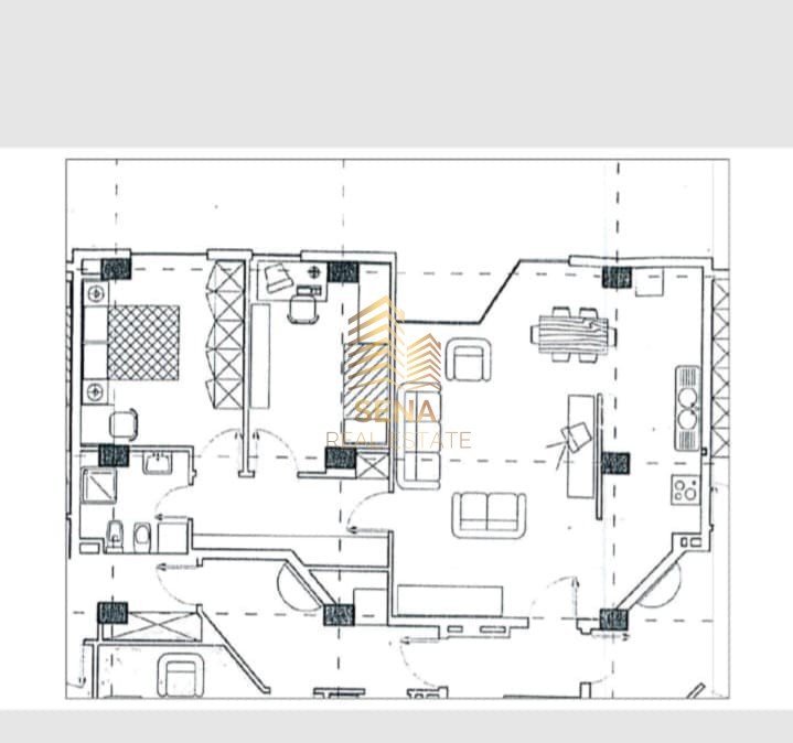 Apartamenti organizohet ne sallon ndenje, ambient gatimi, 2 dhoma gjumi, tualeti dhe ballkoni. Avantazhi i prones eshte planimetria funksionale me mundesi ndarje ne 2 apartamente.