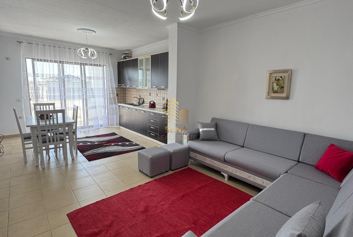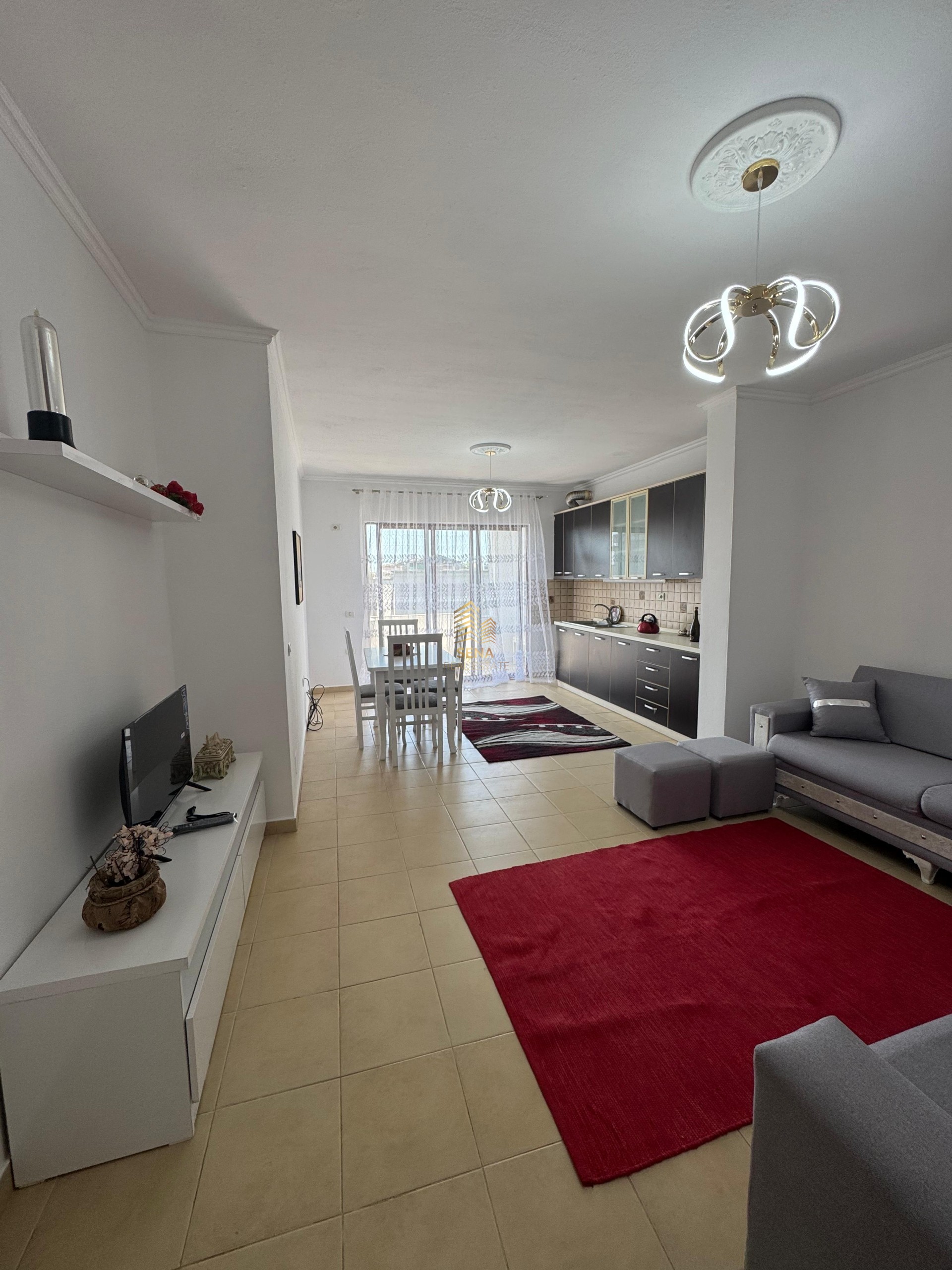 Apartamenti shitet i mobiluar dhe organizohet shume mire me kurbature te rregullt ne korridor, sallon ndenje, ambient gatimi, 2 dhoma gjumi, tualeti dhe ballkoni.