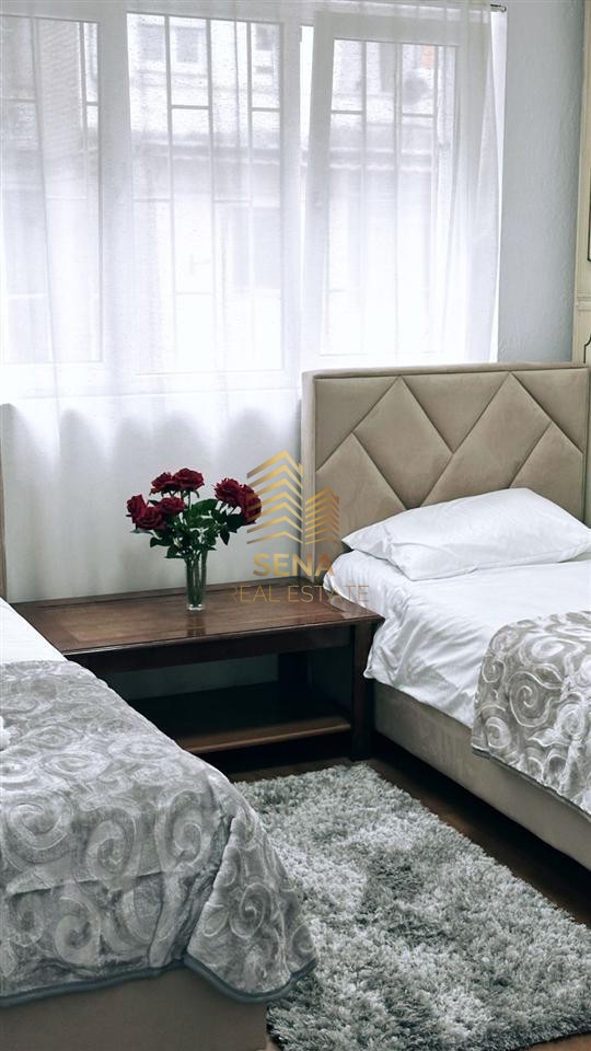 Apartamenti eshte totalisht i investuar, shtruar me parket dhe shitet i mobiluar. Orientimi Lindje.